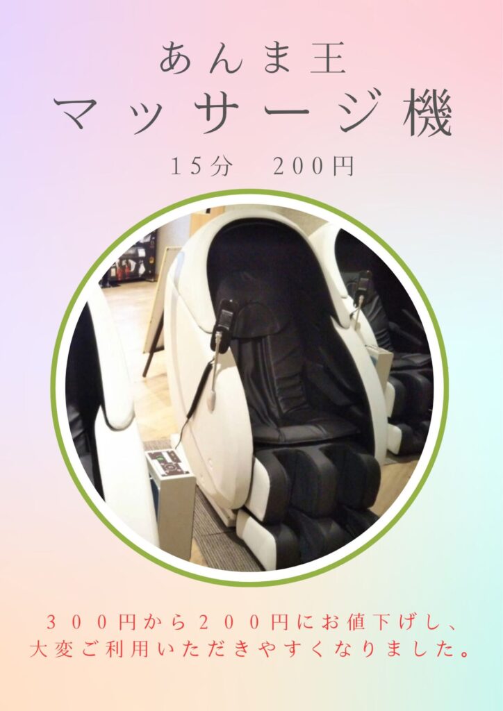 TOP > 新着情報 > マッサージ機料金値下げいたしました。