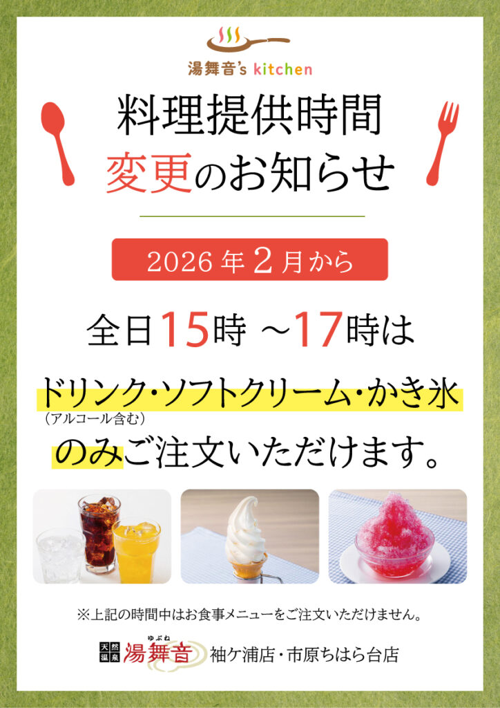 湯舞音’sキッチン料理提供時間変更のお知らせ
