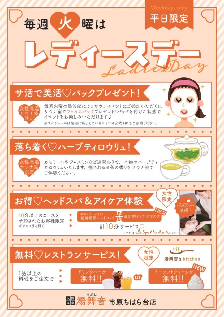 女性のお客様に熱波イベント時にフェイスパックをプレゼント!ロウリュウ水にはハーブティーを使用。リラクのサービスや1品注文していただくと、美味しいミニソフトクリームもプレゼント‼